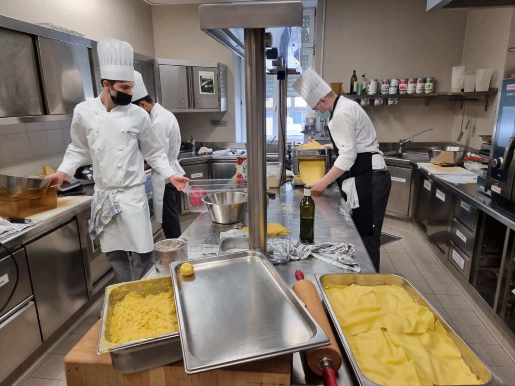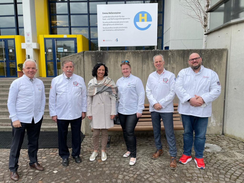 Bei der Programmgestaltung stand die Kochausbildung im Fokus. Deshalb besuchte die Gruppe unter anderem die Landesberufsschulen Hellenstainer in Brixen sowie Savoy in Meran. „Es war spannend, das Südtiroler Berufsschulkonzept kennenzulernen und live zu erleben“, sagt VKD-Geschäftsführerin Felizitas Laun, die für Deutschland bei dem Treffen dabei war. Außerdem standen Besuche bei und Gespräche mit Kochausbildern an: Sternekoch Peter Girtler vom Hotel Stafler in Mauls und Gastronom Christian Pircher Verdorfer vom Apfelhotel Torgglerhof in Saltaus bei Meran. „Beide Köche sind Vorbilder in Sachen gelungene Kochausbildung“, sagt Felizitas Laun. „Wir haben mit den Azubis gesprochen, die begeistert von ihrem Ausbildungsalltag berichtet haben.“