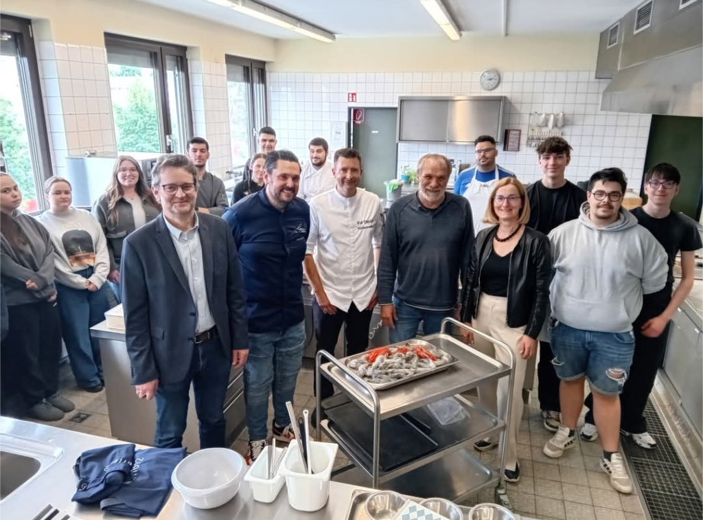 Unter Federführung des Köchevereins Inn-Salzach e. V. kamen die Schülerinnen und Schüler der Berufsschule Altötting in den Genuss einer besonderen „Live“-Praxisstunde. Zu Gast war Alexander Huber aus Pleiskirchen, der vor nunmehr dreißig Jahren seine Ausbildung zum Koch im Gasthof Schwarz in Emmerting absolvierte – und währenddessen ebenfalls die Fachklasse derselben Berufsschule besuchte. Seit zwanzig Jahren ist Alexander Huber Küchenchef im elterlichen „Huberwirt“ in Pleiskirchen, dort kocht er seit 2014 jedes Jahr einen Michelin-Stern und leitet das Wirtshaus der Familie seit 2017. Im Rahmen des praktischen Unterrichts in der Berufsschule Altötting demonstrierte der Sternekoch den angehenden Köchinnen und Köchen der Gastronomie-Abteilung die hohe Kunst des Kochens. Bei der hochkarätigen Koch-Show gab es unter anderem Beef Tatar mit eingelegtem Spargel und scharfer Mayonnaise sowie bayrische Garnele mit pochiertem Ei, Blumenkohlpüree und Sauce Mignonette.