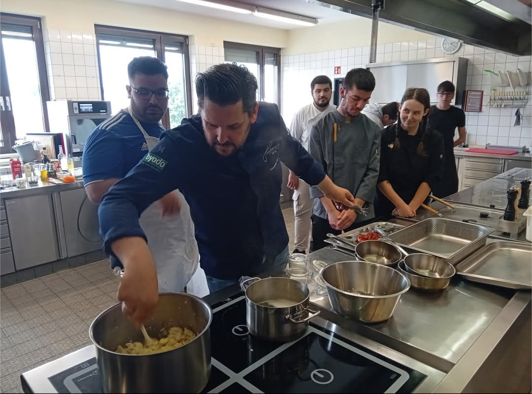 Der ehemalige Schüler der Berufsschule und jetzige Sternekoch Alexander Huber war auf Einladung des Köchevereins Inn-Salzach zu Gast.