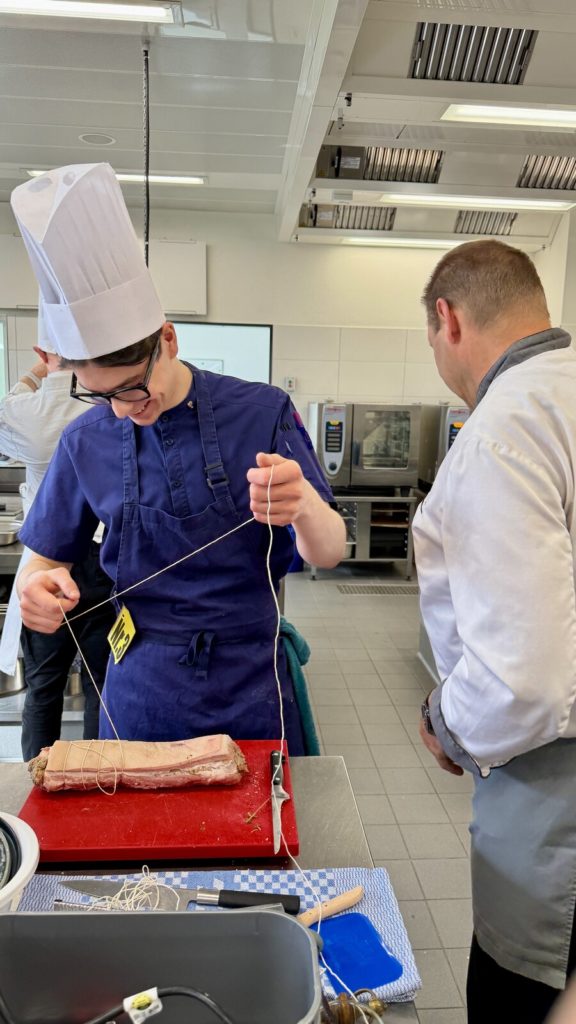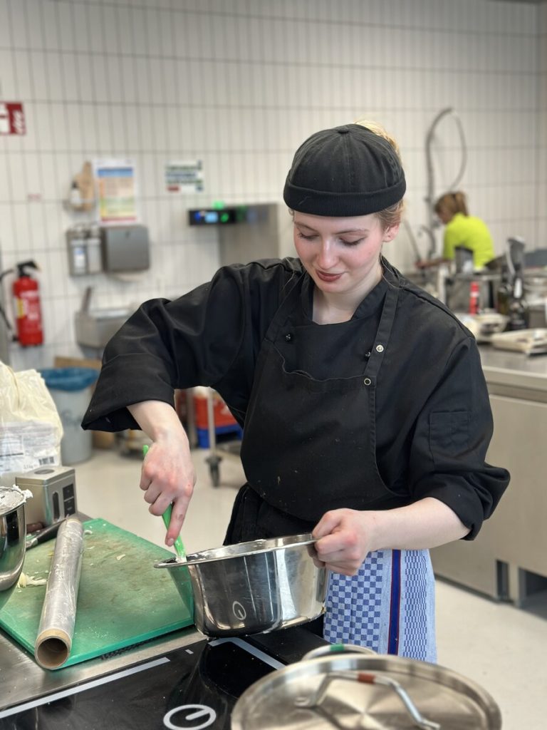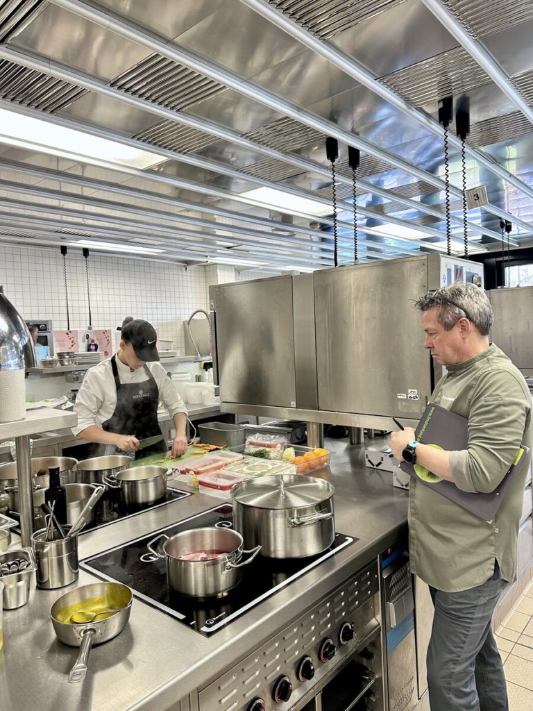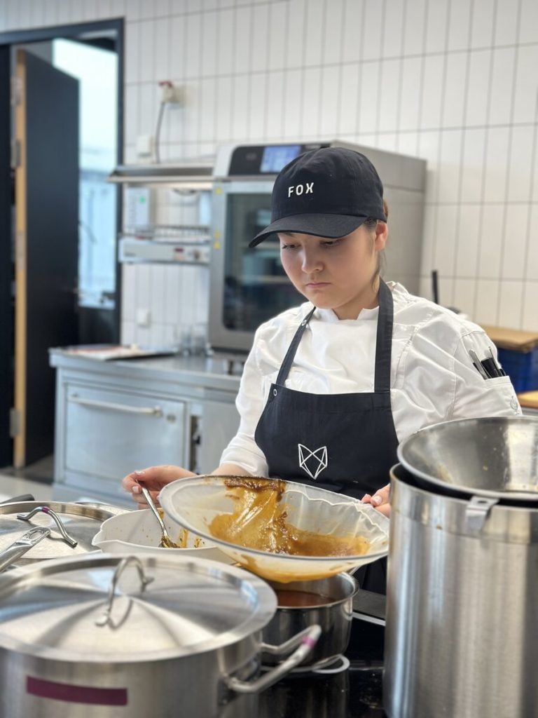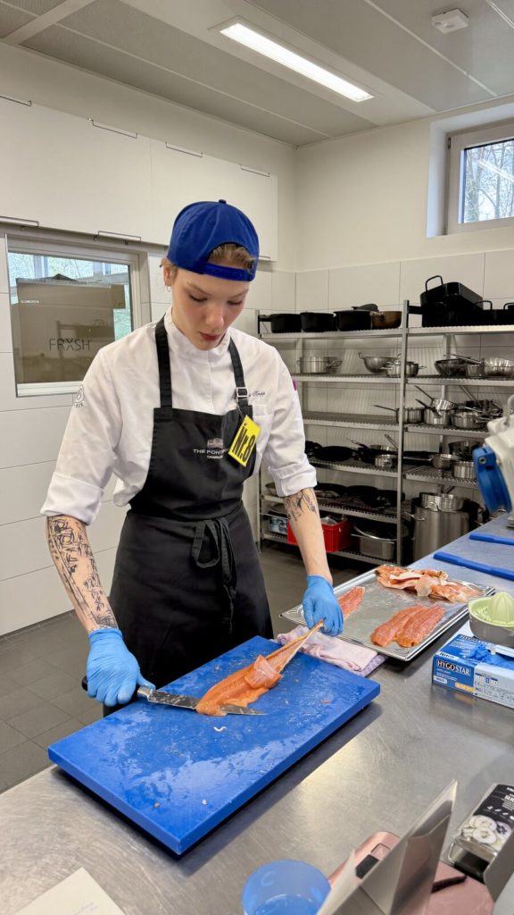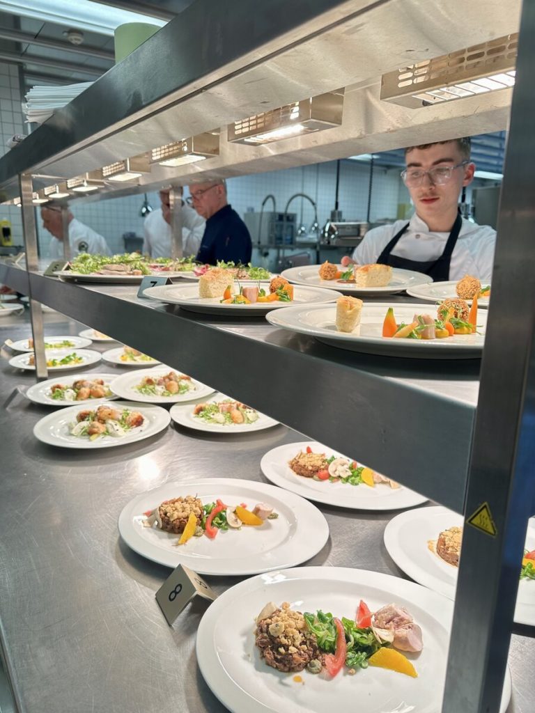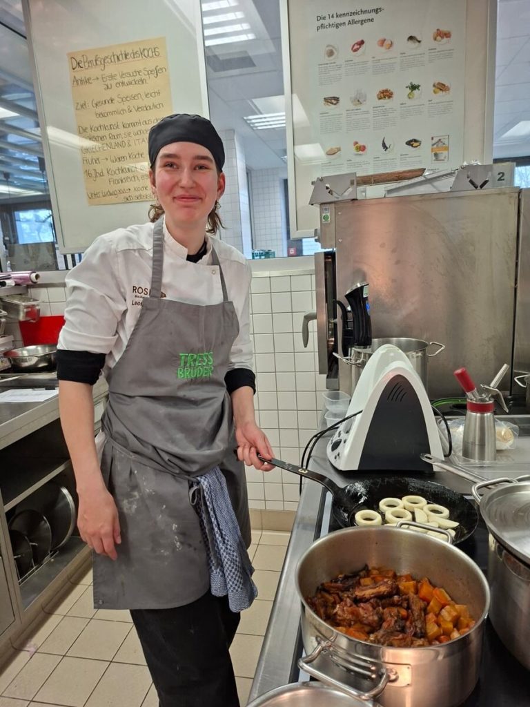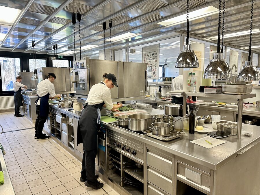 Am 10. April machte der Wettbewerb Station im Berufsschulzentrum am Westerberg in Osnabrück. Auch hier stellten sich acht Nachwuchsköch:innen der Herausforderung und einem anspruchsvollen Warenkorb. Für die Vorspeise waren Goldforelle, Misopaste und Shiitake-Pilze vorgegeben. Im Hauptgang mussten Schweinefilet sowie frischer Schweinebauch mit Schwarte und dreierlei Karotten verarbeitet werden. Den süßen Abschluss bildeten Äpfel und Quark. Unter den rund 30 Gästen befanden sich der Schulleiter Ulf Zumbrägel sowie die Oberbürgermeisterin der Stadt Osnabrück Katharina Pötter, die die Leistungen der Teilnehmenden vor Ort verfolgten. Von Rotwein-Butter-Eis bis geräuchertem Forellenfilet: Die Leihgeräte der Sponsoren Frxsh und Heinzelmann ermöglichten es den Teilnehmenden in allen Halbfinals, ihrer Kreativität freien Lauf zu lassen und sorgten so für geschmackliche Highlights auf den Tellern. Für die passende Weinbegleitung zum Menü sorgte eine Auswahl von der Weinkellerei Höchst. In Osnabrück überzeugten am Ende Isabelle Hatesuer vom Gasthaus Müller in Göxe sowie Svea Kropp vom The Fontenay in Hamburg die Jury und vervollständigen so die Runde der sechs Finalist:innen.