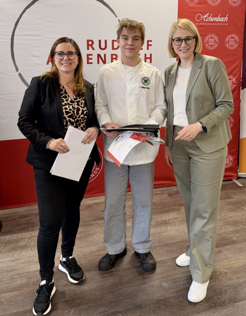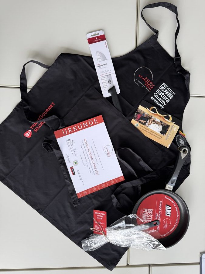 Zusätzlich zu den Gutscheinen von Transgourmet durften sich die Auszubildenden aus Düsseldorf, Fulda und Osnabrück über Urkunden und hochwertige Sachpreise von Partnern und Unterstützern freuen – darunter Goodie-Kits von Transgourmet, Messer von Victorinox, Pfannen von AMT sowie die Möglichkeit, an einem Training der Köche-Jugendnationalmannschaft teilzunehmen.