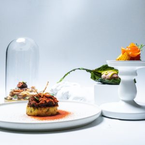 Mecklenburger Feldhase I Kartoffel I Pflaume I Alge I Pastinake I Schwarzkohl – dazu Sanitzer Saibling I Maniok I Sojaei und Feige I Filo