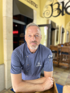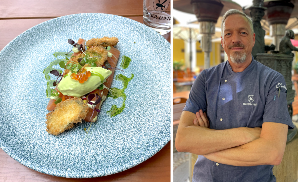 Küchenchef Holger Mootz vor dem Restaurant „Fischer & Lustig“ in Berlin-Mitte.