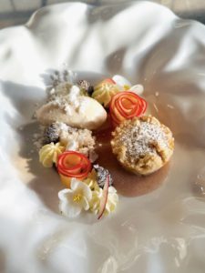 „Desserts sollten eine Geschichte erzählen und meine eigene Liebe für die schönen Dinge im Leben darstellen“, findet VKD-Mitglied Sarah Klüh, Köchin, Hotelbetriebswirtin und leidenschaftliche Patissière mit einem großen Herz fürs Kreative. Die heute 29-Jährige ist seit fünf Jahren im Romantik-Hotel und Restaurant Goldener Karpfen in Fulda und verleiht dort als Chef-Patissière allen Desserts, Torten und Petits Fours ihre kulinarische Handschrift. Das renommierte Hotel in Osthessen war auch ihr Ausbildungsbetrieb, in dem sie die Grundlagen der Küche lernte. Von 2021 bis 2024 war Sarah engagierte Patisserie-Chefin der deutschen Köchenationalmannschaft, sie setzt auf heimische, fruchtige und vor allem authentische Kreationen. „Bevorzugt arbeite ich mit saisonalen und lokalen Produkten – aus Überzeugung.“ Butter darf dabei nicht fehlen, denn: „Butter macht alles besser.“