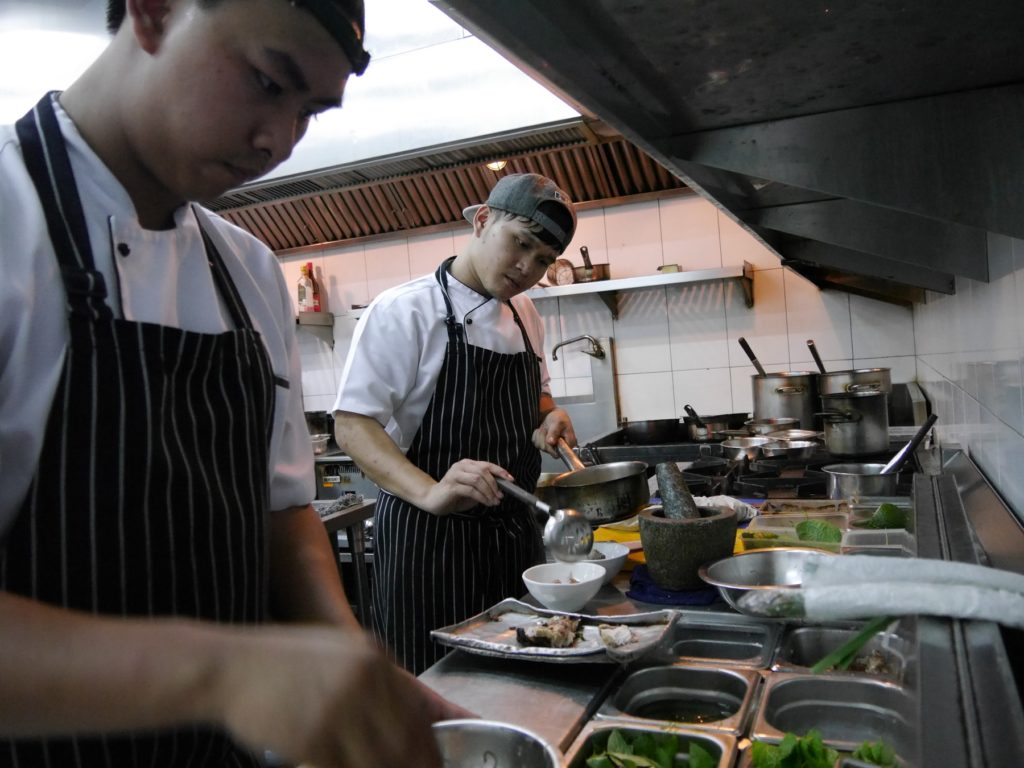 Dabei hatte er Glück: Felix, Souschef im Bo.Ian, stammt aus Deutschland und konnte Bruno alles erklären. „Er war einer der besten in der Küche“, sagt Bruno. „Das war eine Win-Win-Situation für mich.“ Nicht nur, weil Bruno so viel über die traditionelle Küche und Gewürze gelernt hat, sondern auch, weil jemand da war, der ihm alles ohne Sprachbarriere erklären konnte.