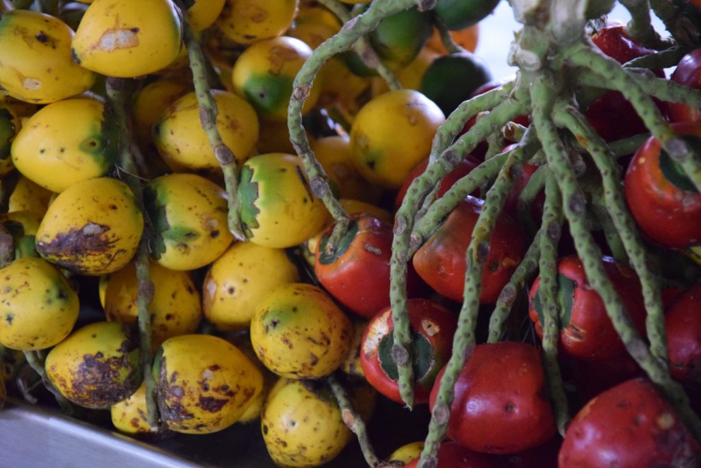 Lassen Sie mich noch ein wenig über meine Reise durchs Amazonas-Gebiet berichten: Sie begann im Dreiländereck Leticia (Kolumbien), Santa Rosa (Peru) und Tabatinga (Brasilien) und führte mich schiffsreisend nach Manaos. 1.600 Kilometer legte ich auf dem Río Amazonas zurück und half einen Tag in der Schiffsküche mit. Transportiert haben wir neben in Hängematten schlafenden Menschen einige Tonnen Pirarucu (dt. Arapaima). Das ist der größte Süßwasserfisch der Welt. Gegrillt schmeckt er vorzüglich. Neben verschiedenen Fischarten wie Piranha kann man auch Caiman oder diverse Larven/Insekten wie zum Beispiel Mojojoy, lebend, gegrillt oder frittiert probieren. Es gibt auch Früchte (Acai-Beere/Kohlpalme, Chontaduro/Pfirsichpalme, Guaraná) oder Gemüse (Okra/Gemüse-Eibisch, Maxixe/Antillengurke), die einem in Deutschland nicht tagtäglich begegnen.