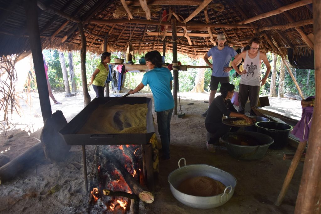 Das Grundnahrungsmittel im Dschungel ist die Maniokwurzel (verschiedene Sorten). Sie stammt ursprünglich aus Südamerika und wird schon seit Jahrhunderten als Lebensmittel verwendet. Im rohen Zustand ist die Wurzelknolle giftig. Durch das Erhitzen, Fermentieren oder Auswaschen verflüchtigt sich die Blausäure. Man gewinnt Maniokmehl sowie -stärke aus der Wurzel, die beide Hauptbestandteil zahlreicher typischer Gerichte sind. Maniok enthält kein Gluten und ist ein optimales Ersatzprodukt für Allergiker.