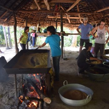 In Brasilien frühstückt man Tapioca (Maniokstärke) als Fladen gefüllt und isst zu fast jeder Speise das berühmte Farofa, geröstetes Maniokmehl. Im venezolanischen Puerto Ayacucho hatte ich das Glück, beim indigenen Volk der Piaroa die Casabe-Herstellung miterleben zu dürfen. Casabe ist ein Art Fladenbrot aus Maniokmehl, das über Feuer oder dem Budare, eine Art Grill, hergestellt wird. Um das Mehl herzustellen, verwendet das Volk ein aus Palmfasern geflochtenes Behältnis namens Sebucán (brasilianisch Tipiti). Dort wird die zerstampfte eingeweichte rohe Maniokwurzelmasse eingefüllt und gepresst, damit die Giftstoffe austreten. Die Maniokmasse wird fertig getrocknet und dann zu Mehl weiterverarbeitet.