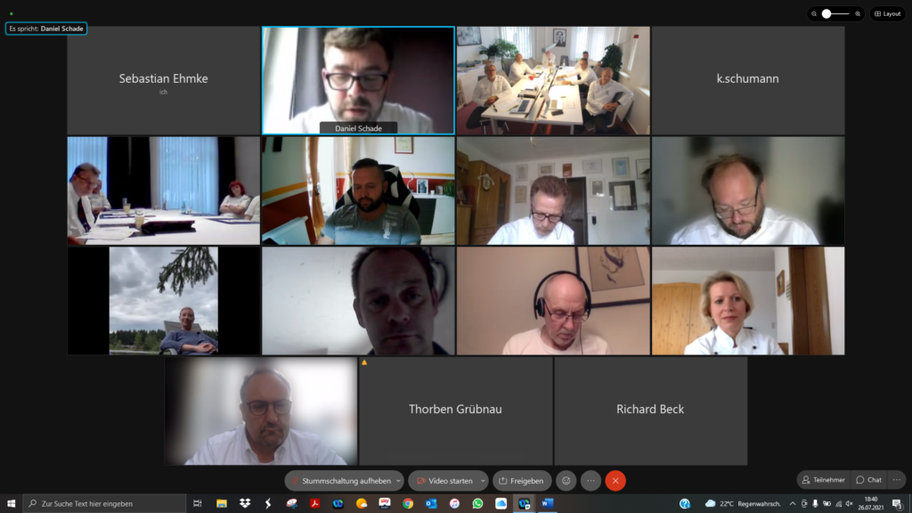Ende Juli hat sich der VKD-Landesverband Mitteldeutschland zur Tagung getroffen – und das mit einem hybriden Veranstaltungskonzept. Der Vorstand des Landesverbands war vor Ort, Mitglieder, Zweigvereine und Gäste waren per Livestream zugeschaltet. „Ursprünglich sollte die Tagung im Rahmen der 100-Jahr-Feier des Zwickauer Köchevereins stattfinden“, erklärt der Vorsitzende Thomas Wolffgang. „Allerdings deckt das Gebiet unseres Landesverbands drei Bundesländer ab, die zum Teil sehr unterschiedliche Hygieneregeln bedienen. Deshalb haben wir Feier, Tagung und Wahl voneinander getrennt.“ An der digitalen Tagung teilgenommen haben die Zweigvereine Chemnitz, Dresden, Erfurt, Gera, Leipzig und Dessau. Virtuell dabei war auch der amtierende VKD-Präsident Richard Beck, der die Runde begrüßte.