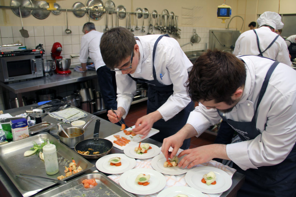 Die Nähe zur Praxis ist dabei immer gegeben: So wird gemeinsam mit den Schülern der einjährigen Berufsfachschule Gastronomie ein Mittagstisch für Lehrkräfte ausgerichtet. Apropos: Die meisten der insgesamt elf Lehrerinnen und Lehrer im Bereich Gastronomie sind vom Fach und haben eine Ausbildung in der Branche absolviert. Für den notwendigen internationalen Touch hospitieren einige von ihnen im Rahmen von Erasmus Projekten außerdem regelmäßig in anderen europäischen Ländern.