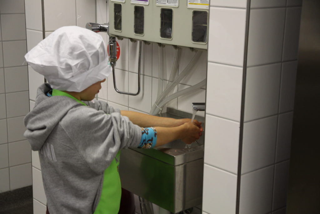 Nach einem Kräuterquiz und einer kurzen Hygiene- und Sicherheitsschulung ging es für die jungen Köchinnen und Köche in die Küche. Unter dem diesjährigen Motto „How Healthy Food Works“ zauberten die Kinder eine Karotten-Süßkartoffel Suppe mit Chesterstangen, ein Falafel-Krokodil, ein gefülltes Rennauto mit Spinatpüree, einen Orangen-Basilikum Muffin und einen Obstsalat. Die Fantasie spielt bei der Zubereitung eine große Rolle. Mit kreativen Ideen wie dem Rennauto essen Kinder dann sogar „eklige“ Dinge wie Spinat. Die jungen Küchenmeister waren an diesem Tag jedoch zu keinem Zeitpunkt allein. Unterstützt wurden sie von Nils-Levent Grün, Küchenchef im Jumeirah in Frankfurt, Axel Kappenberger, Küchenfachlicher Berater bei Nestlé, Dr. Anette Neubert aus dem Ernährungsstudio bei Nestlé, sowie Dr. Torsten Dickau, dem Leiter des Service Centers bei Nestlé. Die Experten standen den Kindern mit Rat und Tat zur Seite und sorgen für einen reibungslosen Ablauf.