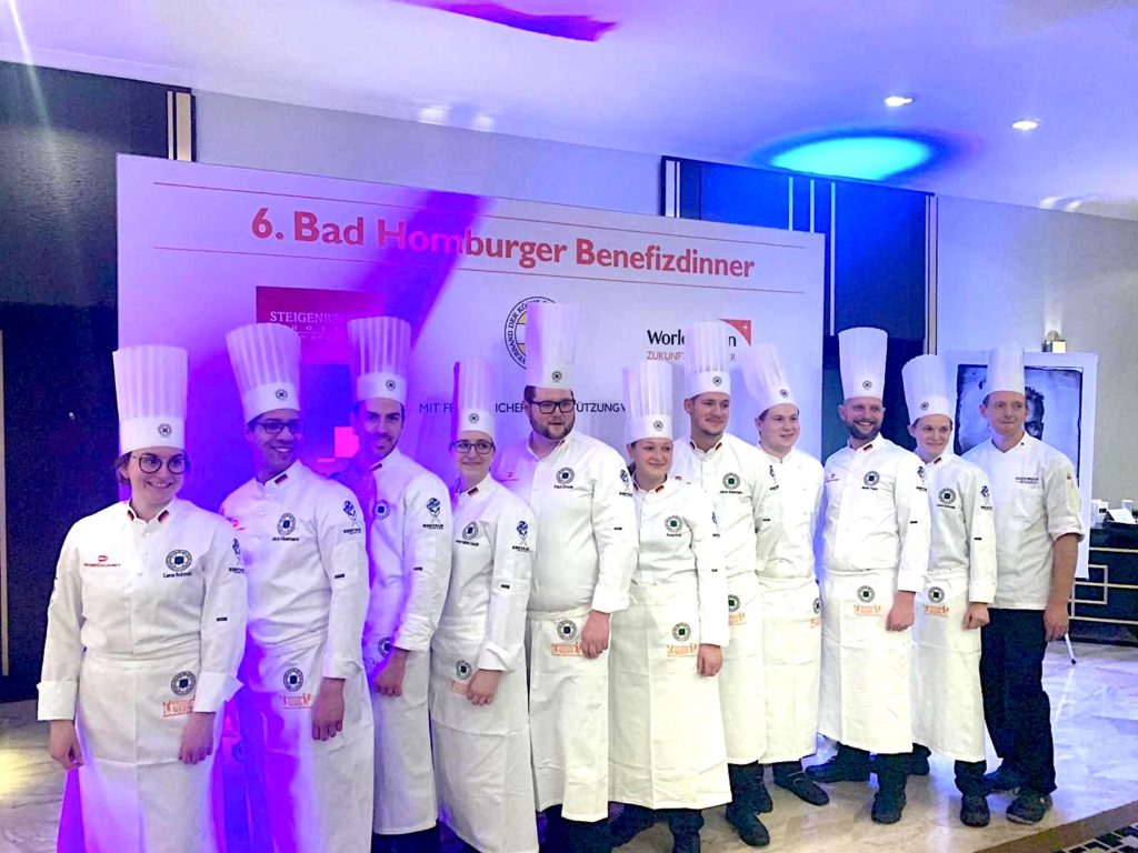 Die sechste Veranstaltung dieser Art stand erneut unter der Schirmherrschaft des hessischen Ministerpräsidenten Volker Bouffier, eingeladen hatten die Kinderhilfsorganisation World Vision, das Steigenberger Hotel Bad Homburg und die deutsche Köche-Nationalmannschaft des Verbands der Köche Deutschlands e. V. (VKD). 150 Gäste kamen, um mit ihrer Eintrittskarte Gutes zu tun für Kinder in Not. „Es war uns eine große Freude, unseren Beitrag bei einer solchen Veranstaltung leisten zu können“, fasste Jugendtrainer Paul Emde den Team-Einsatz an diesem Wochenende und das soziale Engagement zusammen. „Die Bedingungen im Steigenberger Hotel sind ausgezeichnet und das Team vor Ort um Küchenchef Andreas Kimmel hat uns bestens unterstützt.“