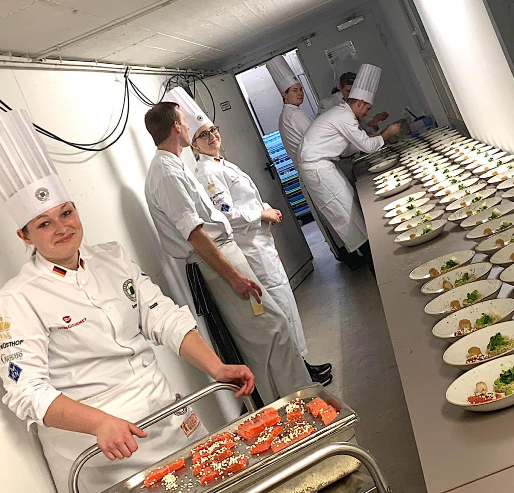 Den außergewöhnlichen Rahmen nutzte das VKD-Team, um weiter an seinen Wettbewerbsmenüs zu feilen und die Abläufe zu trainieren. Die Mannschaft zeigte sich besonders beeindruckt von Judith aus Ghana und freut sich nun, dass die Erlöse des festlichen Abends in Höhe von 48.000 Euro verwendet werden können, die dringend notwendigen neuen Brunnen zu bauen.