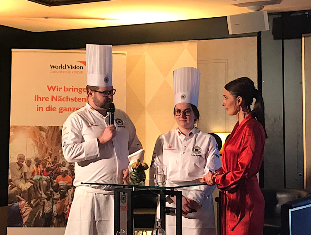 Es wurde ein Abend voller Emotionen und starker Worte – nicht zuletzt, weil die 19-jährige Judith Etse und ihr Betreuer Edward Owulah aus der Region Krachi East in Ghana auf der Bühne standen und aus ihrer Heimat berichteten. „Wir freuen uns, dass in diesem Jahr unsere Gäste Informationen über Patenschaften aus erster Hand bekommen konnten“, erklärte Christoph Hilligen, Vorstand von World Vision. Und während die Gäste den Ausführungen der Moderatorin Anja Kohl folgten, ging es in der Küche heiß her: Die Mitglieder des Junior und des Senior Teams arbeiteten Hand in Hand, um den Gästen alle Gänge wie geplant zu präsentieren.