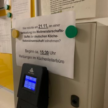 In Laufnähe zur Hochschule wiederum liegt das Mannschaftsquartier, das Schroeders Stadtwaldhotel, in dem alle Teammitglieder wohnen und sehr freundlich begrüßt wurden. Nach dem dortigen Frühstück und einer gemeinschaftlichen Teambesprechung geht es von nun an täglich in die großzügigen Küchenräume, in denen Küchenchef David Wagner die Teams herzlich und sehr gastfreundlich empfangen hat.