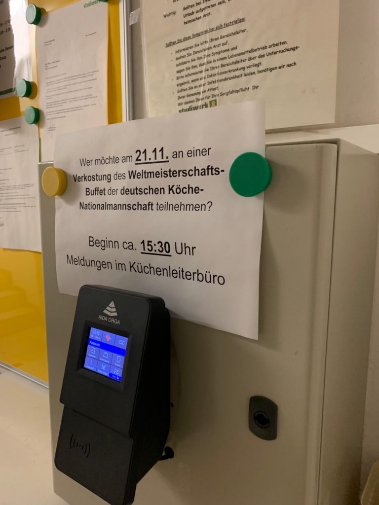 Die Bedingungen in der Küche des Studiwerks Trier in der Mensa Schneidershof sind optimal für die beiden kommenden Wettbewerbswochen. Eigene Räume, viel Platz und eine große Bereitschaft, die Teams in jeder Hinsicht zu unterstützen. „Wir helfen gern und freuen uns sehr, dass die beiden deutschen Köche-Nationalmannschaften bei uns ihr WM-Lager aufgeschlagen haben“, sagt Küchenchef David Wagner.