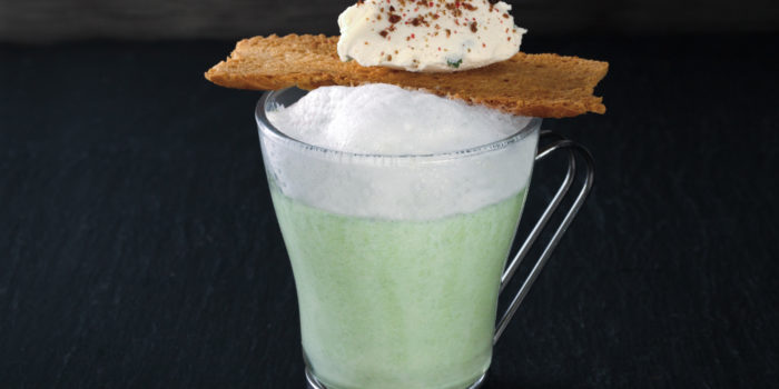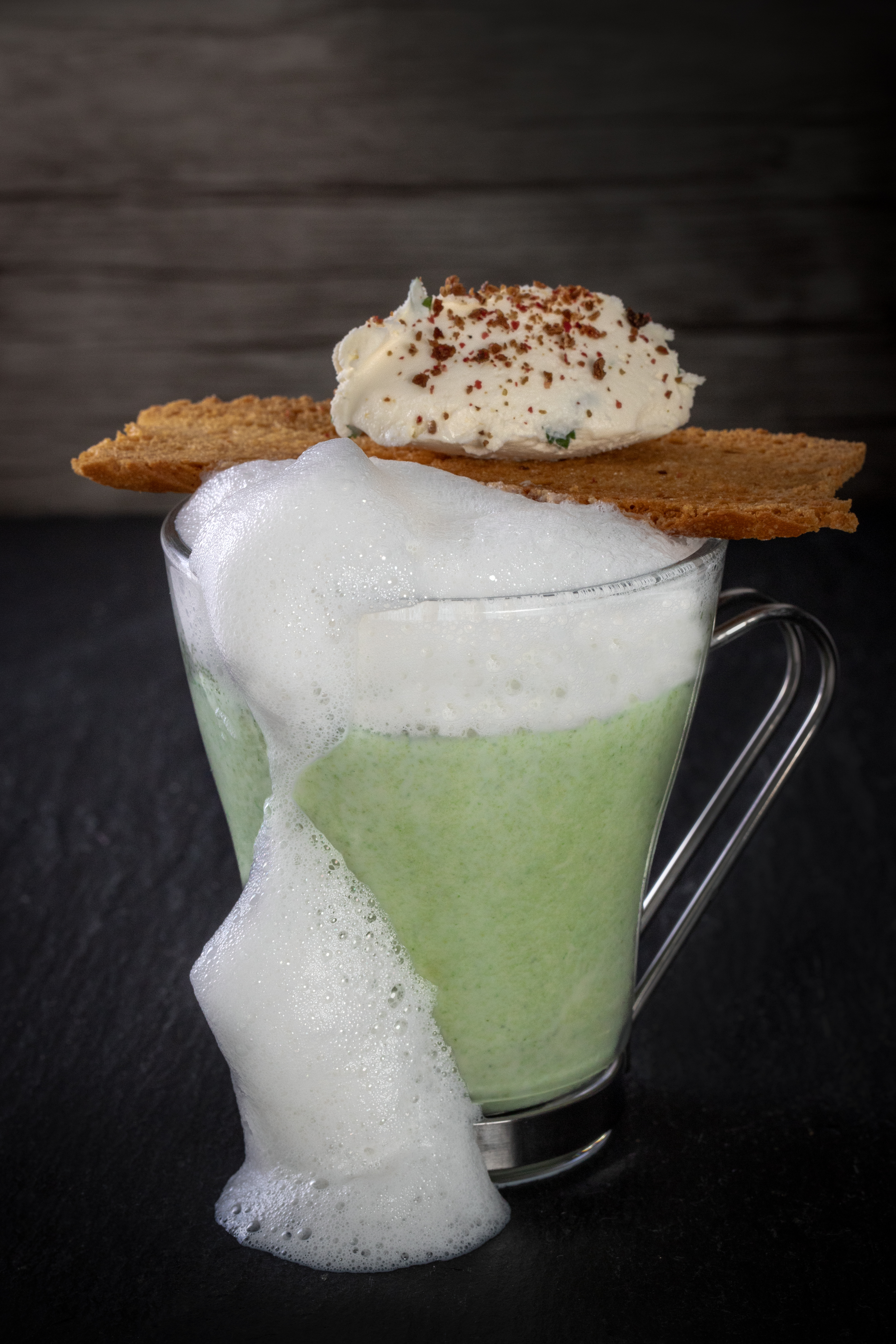 Bärlauch Cappuccino mit Brotchip und Ziegenkäse