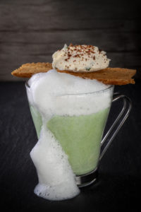 Sieht nicht nur gut aus, sondern schmeckt auch gut: Bärlauch Cappuccino mit Brotchip und Ziegenkäse. Foto: VKD/Ingo Hilger