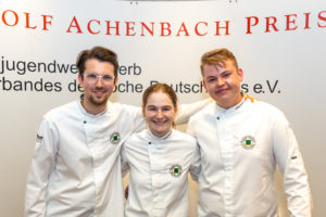 Frankfurt, 15. Mai 2022 – Nach zwei Jahren coronabedingter Pause ist der älteste Nachwuchswettbewerb für junge Köchinnen und Köche in spe zurück. Am 14. und 15. Mai hat in der Mainmetropole eine waschechte Hessin den 46. Rudolf Achenbach Preis erkocht: Anna Lena Trabert, Auszubildende in den Broermann Health & Heritage Hotels in Königstein, setzte sich im Finale des Bundesjugendwettbewerbs des Verbands der Köche Deutschlands e.V. (VKD) gegen die ebenfalls starken Titelaspiranten Daniel Ratzka vom alexxanders in Chemnitz (2. Platz) und Lasse Kunft vom Ringhotel Birke in Kiel (3. Platz) durch. Die gebürtige Bad Sodenerin, die früh das Kochen für sich entdeckte und seit längerer Zeit den Traum der Selbständigkeit hegt, hat die Jury mit Fachwissen, professioneller Arbeitsweise und ihrem überragenden Vier-Gang-Menü am meisten überzeugt.