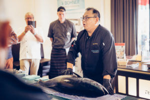 Auf dem Programm am Samstag standen acht Vorträge und drei Workshops von hochkarätigen Speaker:innen. Der ehemalige Sternekoch Franz Keller las aus seinem aktuellen Buch zum Thema Fake Food vor, Teppanyaki-Meister Xiao Wang von Bohner zerlegte einen rund ein Meter langen Thunfisch und beim Vortrag von VKD-Ausbildungsexperte Heiko Becker zur Neuordnung der Kochausbildung wurde angeregt diskutiert. Die F&B Heroes waren gleich mit drei Referent:innen sowie drei unterschiedlichen Themen vertreten und Udo Pollmer polarisierte mit seinem Vortrag zu den Auswirkungen der Umweltpolitik auf die Ernährung. VKD-Vizepräsident Thorben Grübnau gab zusammen mit Jörg Langhof einen Einblick, wie man mit digitalen Tools zeitgemäß ausbilden und Nachwuchstalente effektiv fördern kann.
