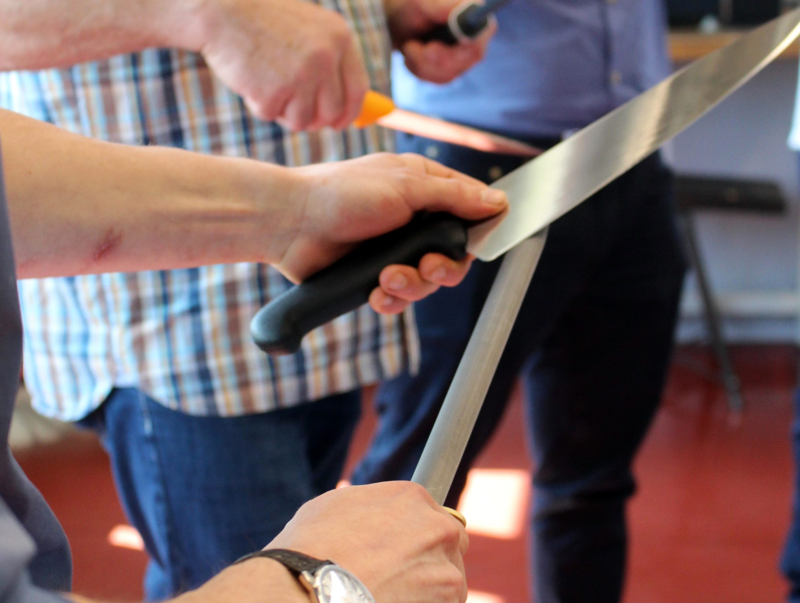 Das Messer gehört zum wichtigsten Werkzeug in der Küche. Wie jedes andere Werkzeug verliert auch das Messer früher oder später an Schärfe. Im Schleifseminar vom Bundessieger Alexander Walker lernen Teilnehmende, wie sie ihre Messer richtig schärfen. Nach einem Theorieblock mit den wichtigsten Punkten zum Thema Schleifen und Abziehen folgt der praktische Teil. Hier werden unterschiedliche Schleifsteine und Stähle vorgestellt. Die Teilnehmenden lernen verschiedene Schleif- und Abziehtechniken und können dabei ihre mitgebrachten Messer auf Rasierschärfe schleifen.