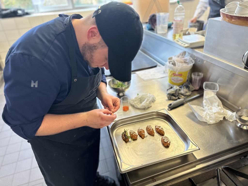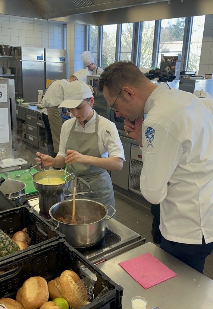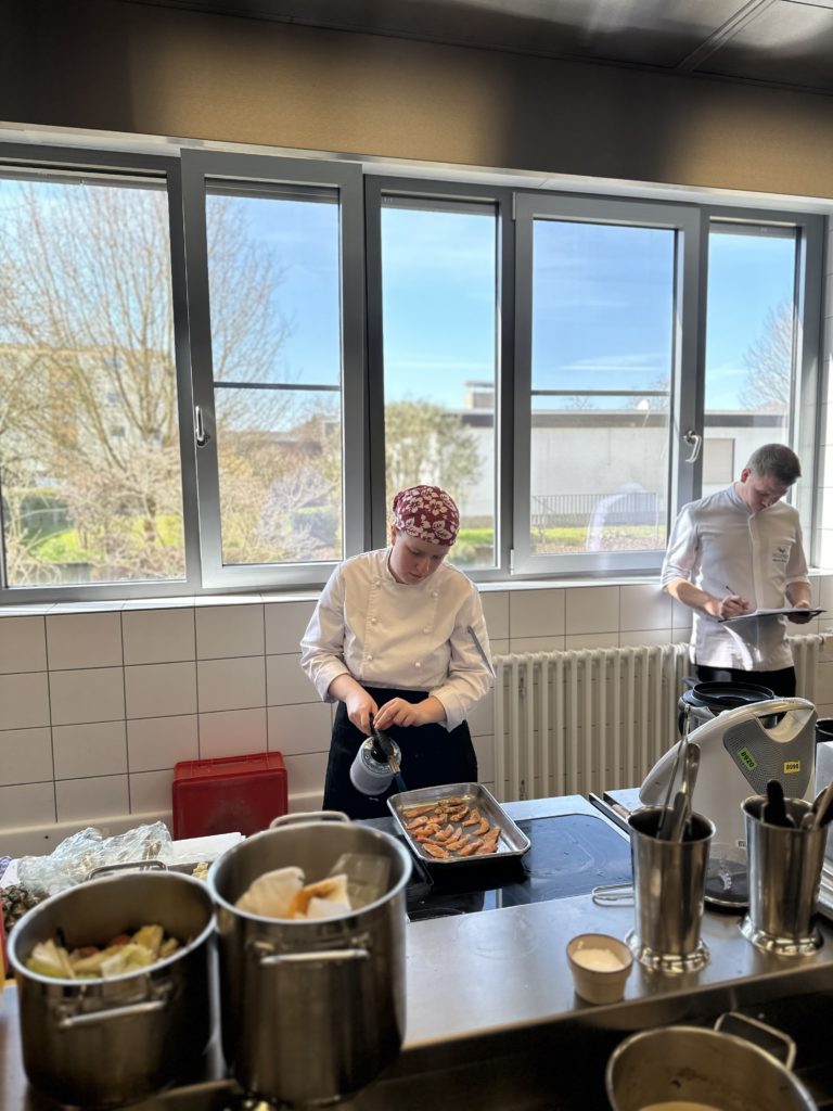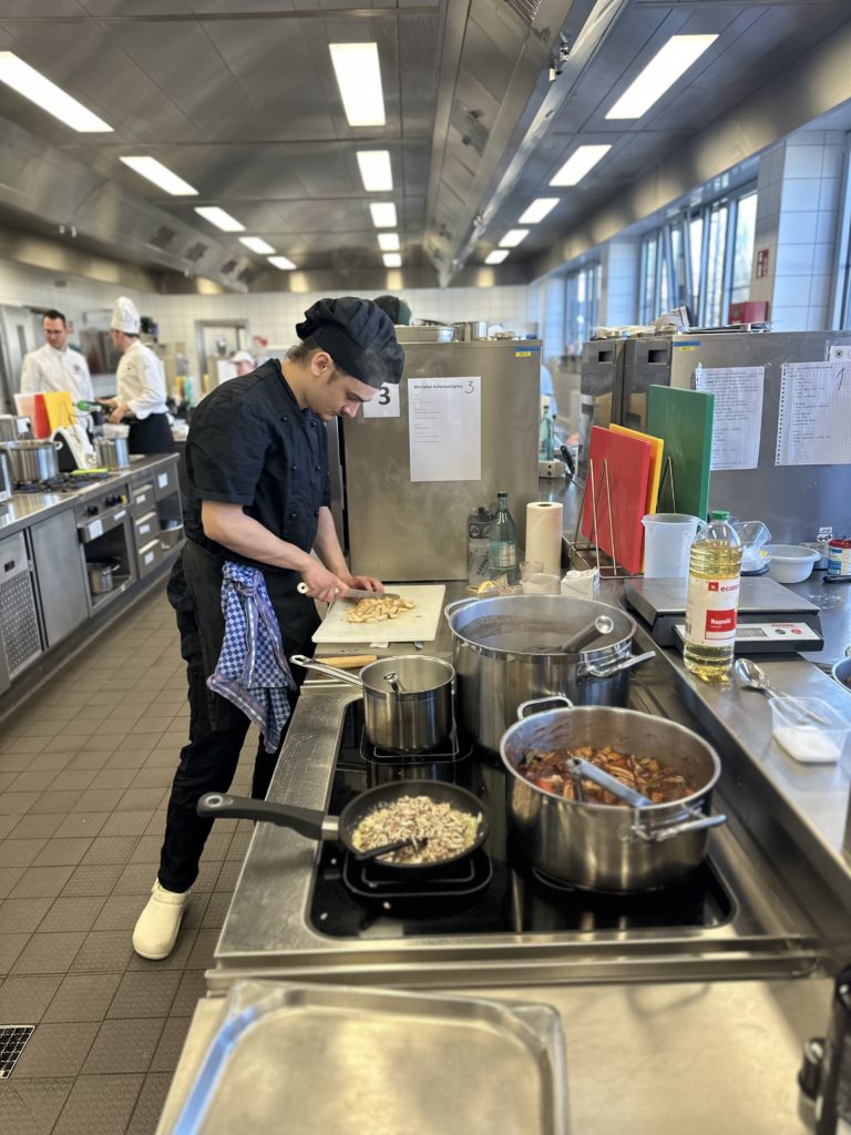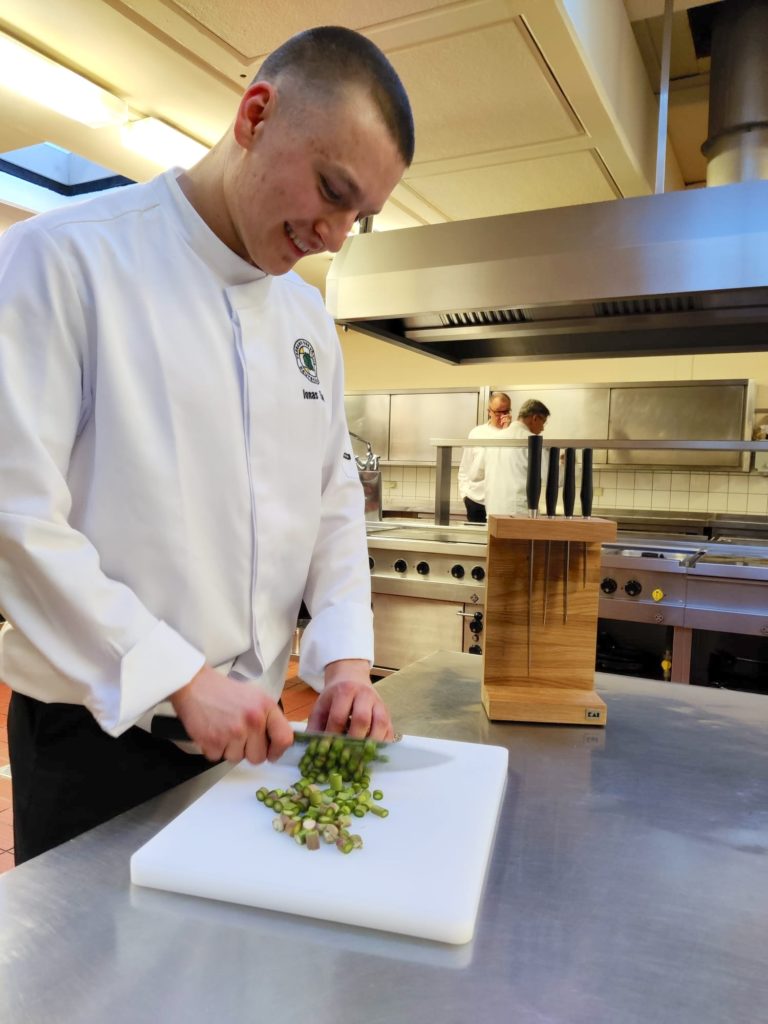 23 talentierte Kochazubis hatten sich für die Halbfinals qualifiziert. Am 20. März traten in Aschaffenburg 16 angehende Köch:innen am Herd gegeneinander an. Neun Tage später ging es in Cuxhaven weiter, wenn sieben weitere Azubis um das begehrte Finalticket kämpften. Die Aufgabe in Unterfranken und an der Nordsee: in sechs Stunden ein Drei-Gang-Menü für je sechs Personen planen, zubereiten und anrichten. Genau wie bei der Abschlussprüfung blieb der Warenkorb bis zum Wettkampftag offen – die Halbfinals boten deshalb eine wertvolle Vorbereitung auf die bevorstehenden Tests.